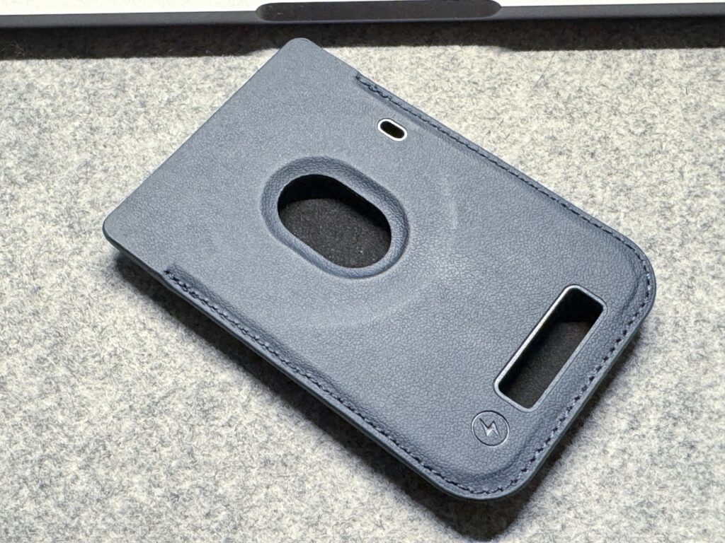 如果要把它跟 iPhone 一起放,那还需要一个 MagSafe 皮套,目前有蓝色和黑色两种可选。皮套感觉做工一般,24小时还没到呢,皮套背后就有塌方的感觉。如果卡片本身带磁吸功能就好了,我并不介意它因此再厚个一两毫米。