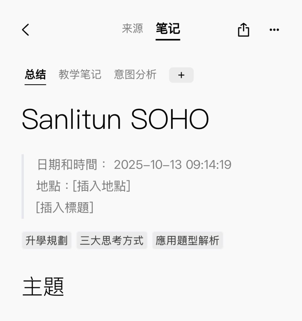 前面我提到过“飞书妙记”,那是因为公司内部沟通都在飞书上,然后就养成了用它做“转写”的工作习惯。它的总结功能是需要额外付费的,这就很尴尬。我后来只能是把转写出来的文本丢给其他的通用 AI 工具再生成一次总结(或者说笔记)。