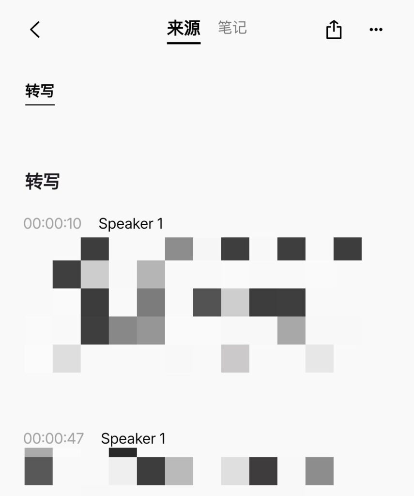 但优雅的基础是建立在功能完好之上的,这次电话录音并没有达到我的预期。理由有二:首先是说话者的识别,Plaud 并没有识别出两个 Speakers 来;然后是部分录音缺失,我会听了录音,对方只有一部分的声音被录制了下来,还缺少一些。